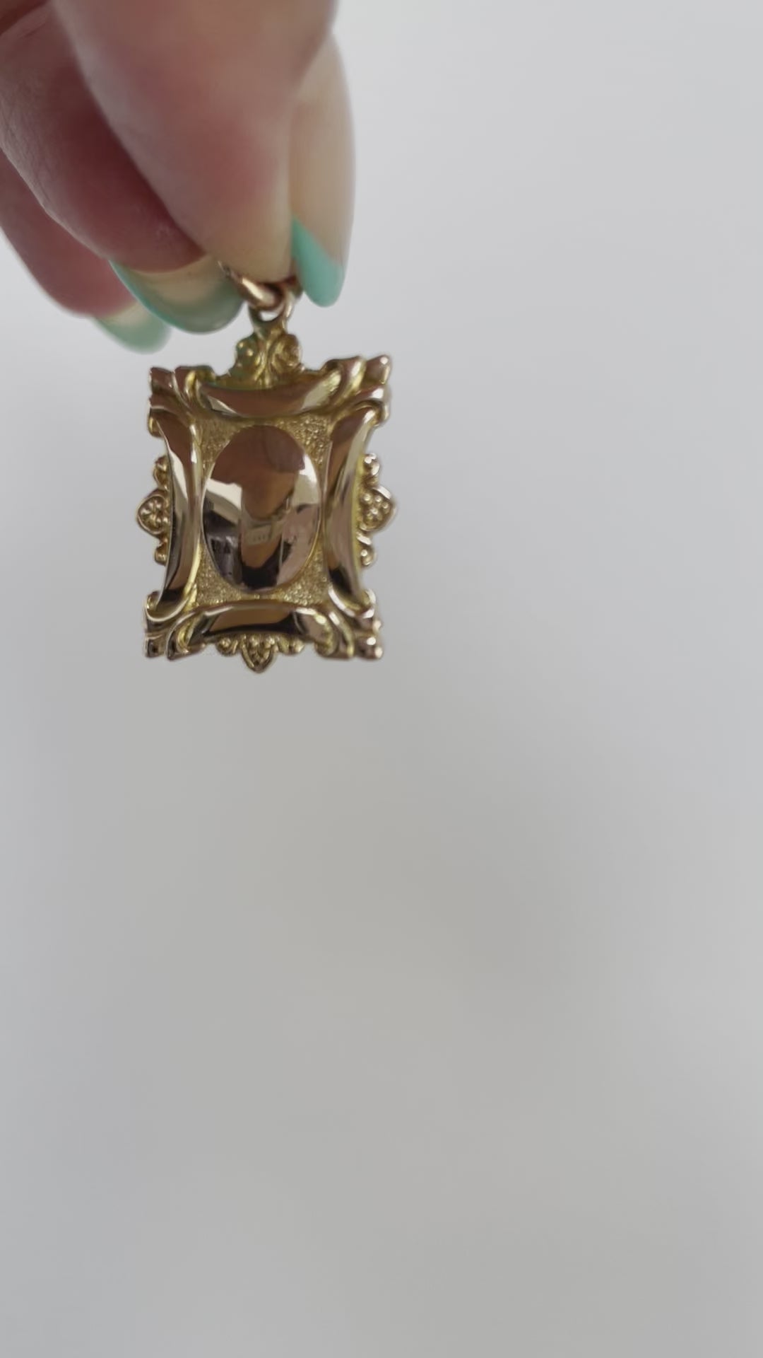 A gorgeous solid gold fob pendant. Chester hallmarked as 9ct and dated 1927. Weighing 4.3g.